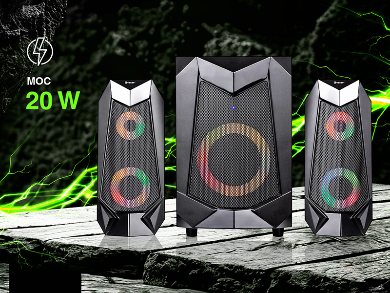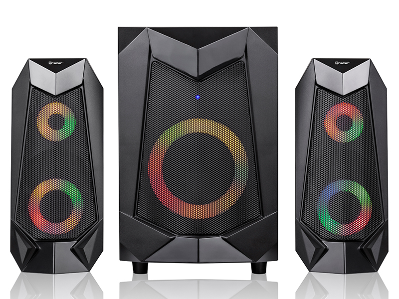 Zanurz się w niezwykłej jakości dźwięku, jaką oferuje zestaw Tracer Hi-Cube RGB flow BT i odkryj na nowo niesamowite brzmienie Twoich ulubionych utworów. Tracer Hi-Cube RGB flow Bluetooth to multimedialny zestaw działający w systemie 2.1. Idealne rozwiązanie dla użytkowników poszukujących wysokiej jakości i mocy dźwięku. Unikalny gamingowy design oraz rewelacyjny dźwięk pochodzący z drewnianego subwoofera i dwóch satelit sprawia, że ten zestaw zadowoli każdego fana muzyki. Głośniki są stworzonej specjalnie dla graczy ceniących połączenie najwyższej jakości wykonania z zaawansowanymi funkcjami urządzeń gamingowych.