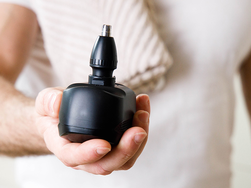 W komplecie znajduje się trymer do nosa, który pozwala na szybkie i bezpieczne usunięcie niechcianych włosków, zapewniając pełną pielęgnację w jednym urządzeniu.