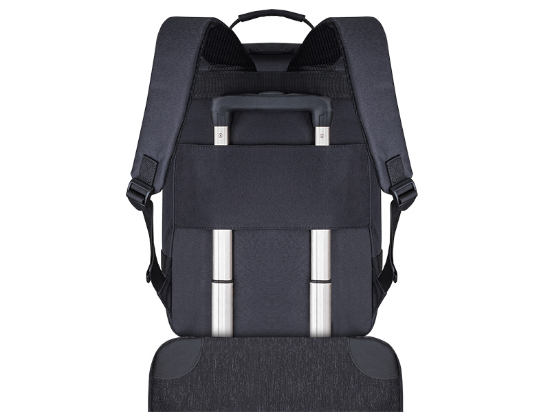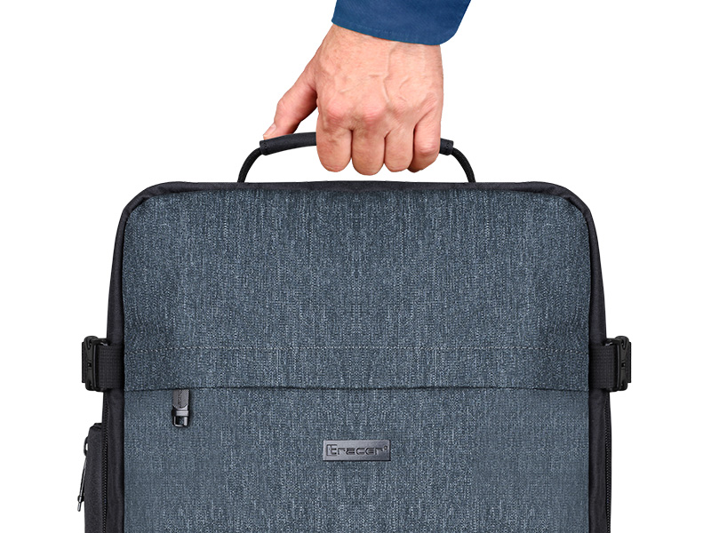 Boczna rączka umożliwia szybkie przenoszenie plecaka, jak torby podręcznej, gdy chcesz mieć go pod ręką, nie zdejmując go z pleców. Dodatkowo, pasek mocowania do walizki ułatwia przemieszczanie się na lotnisku, pozwalając na bezproblemowe przymocowanie plecaka do uchwytu walizki.