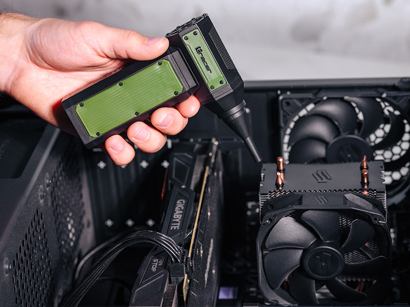 W zestawie znajdują się cztery różne końcówki czyszczące, które umożliwiają precyzyjne kierowanie strumieniem powietrza. Dzięki nim łatwo dotrzesz do trudno dostępnych miejsc, takich jak szczeliny w klawiaturze, wentylatory komputerowe czy zakamarki w samochodzie. To sprawia, że Tracer AirForce jest niezastąpionym narzędziem w domu, biurze i warsztacie.