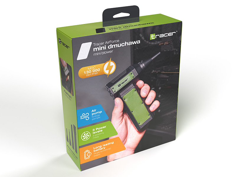 Dmuchawa oferuje trzy poziomy intensywności nadmuchu, co pozwala na precyzyjne dostosowanie siły strumienia powietrza do konkretnego zadania. Niezależnie od tego, czy potrzebujesz delikatnego podmuchu do usunięcia kurzu z klawiatury, czy silnego strumienia do oczyszczenia trudno dostępnych miejsc, Tracer AirForce sprosta Twoim oczekiwaniom.