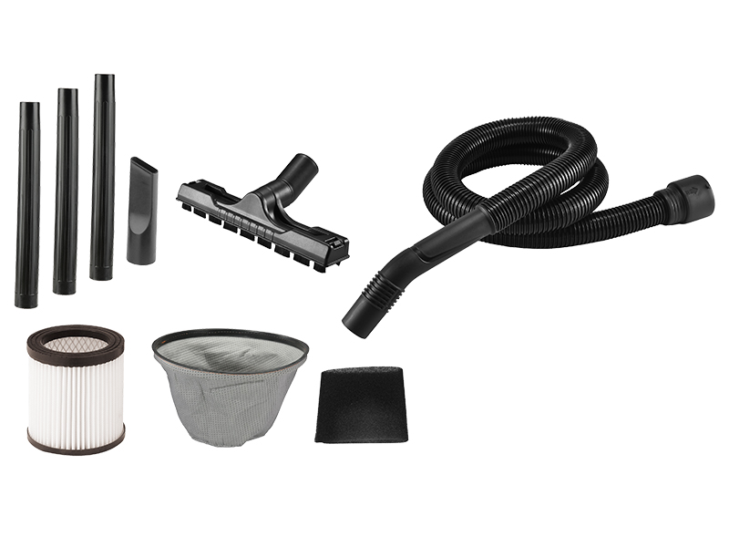 3x plastikowa rurka, wąż 1,5m, filtr hepa, filtr gąbkowy, kwadratowa dysza, dysza szczelinowa, separator do popiołu
