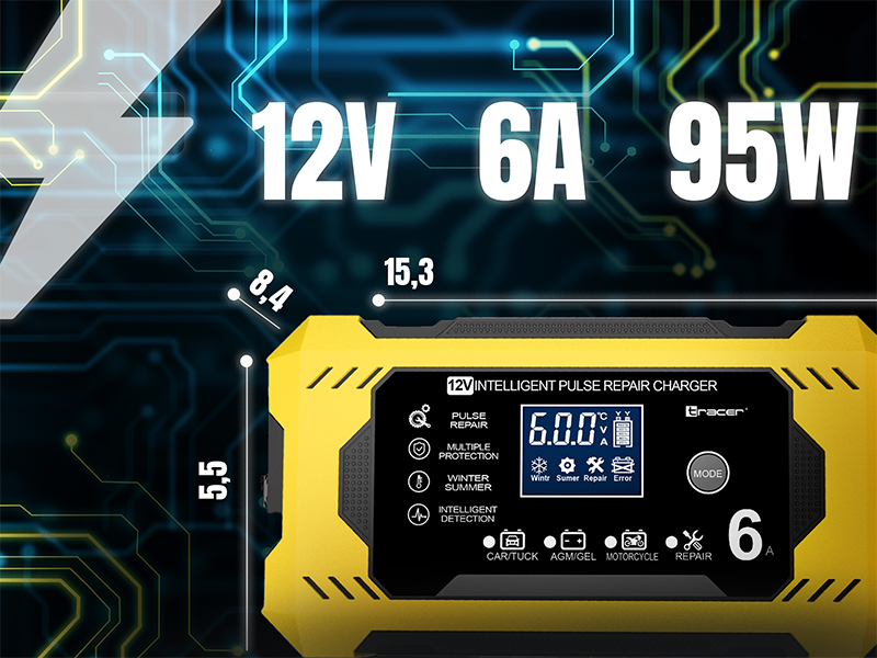 Prostownik Tracer DT126 to zaawansowane urządzenie stworzone z myślą o użytkownikach, którzy oczekują niezawodności, bezpieczeństwa i maksymalnej dbałości o stan akumulatora. Dzięki nowoczesnym funkcjom i inteligentnym trybom pracy, prostownik sam dopasowuje parametry ładowania, a jednocześnie pozwala wydłużyć żywotność akumulatora w każdych warunkach.
