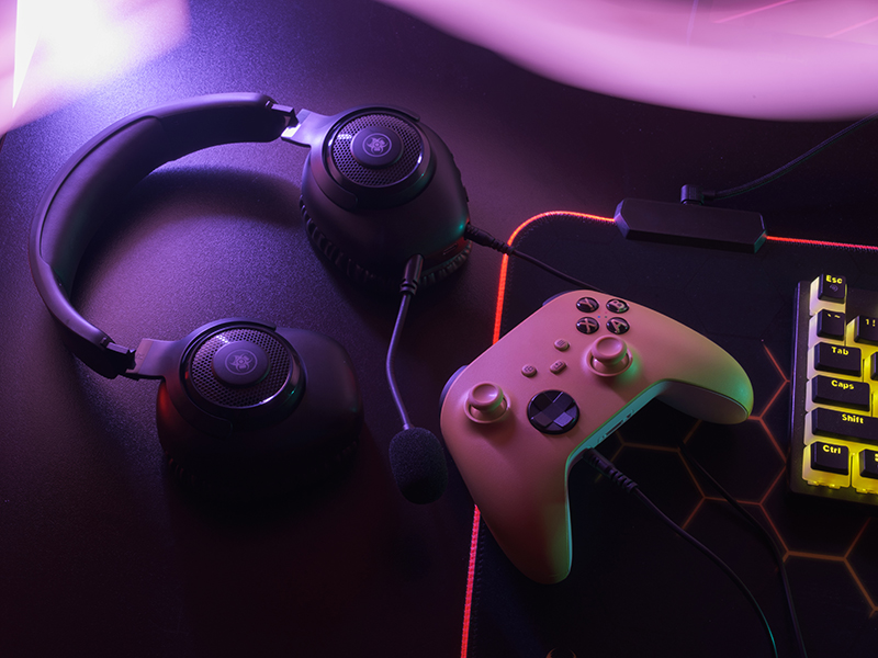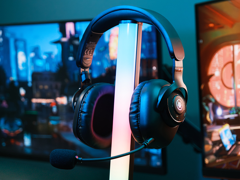 Dzięki wadze zaledwie 240 g, miękkim nausznikom i regulowanemu pałąkowi, słuchawki są niezwykle komfortowe nawet przy wielogodzinnych sesjach. Subtelne oświetlenie RGB dodaje im nowoczesnego, gamingowego charakteru.