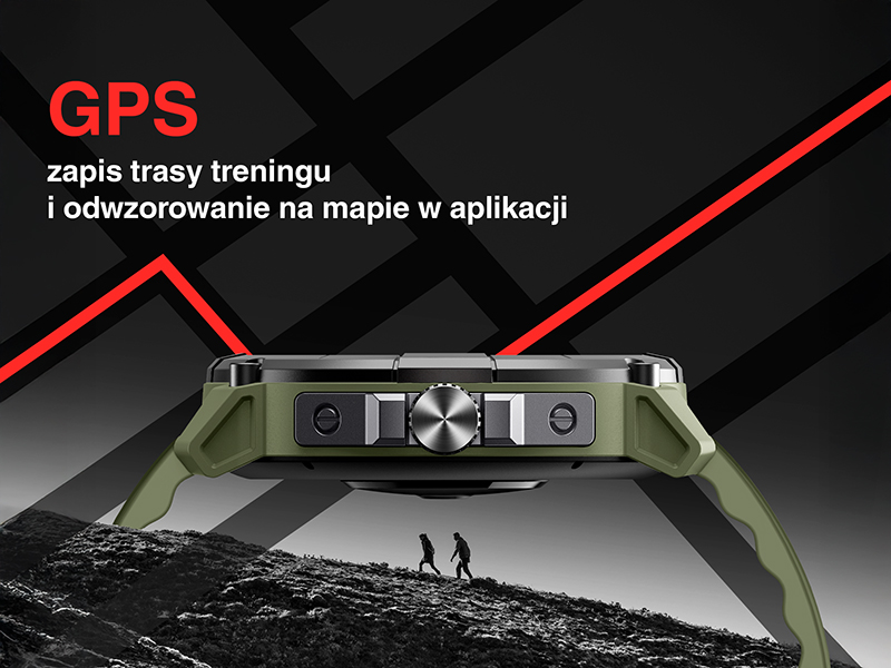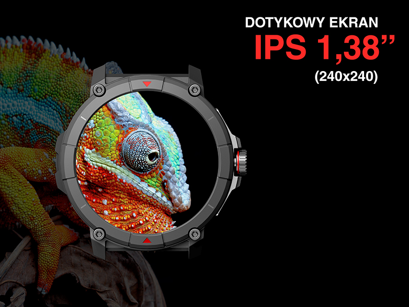 Zegarek wyposażony jest w czytelny ekran IPS o przekątnej 1,38 cala (240x240), który gwarantuje wyraźny obraz nawet w pełnym słońcu. Dotykowy wyświetlacz umożliwia łatwą obsługę wszystkich funkcji i szybki dostęp do danych zarówno w ruchu, jak i w codziennych sytuacjach.