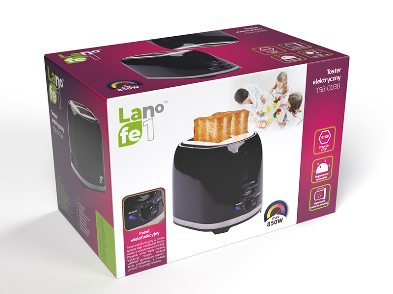 Toster elektryczny marki LAFE TSB003B jest urządzeniem, które każdy amator grzanek powinien mieć. W prosty i szybki sposób robi tosty, które wszyscy tak lubimy. Prosty w obsłudze oraz w czyszczeniu ułatwi każdemu codzienne przygotowania w kuchni.Toster Lafe wyposażony w podstawowe funkcje z płynną regulacją temperatury grzania, która pozwala na opiekanie tostów według własnego uznania.