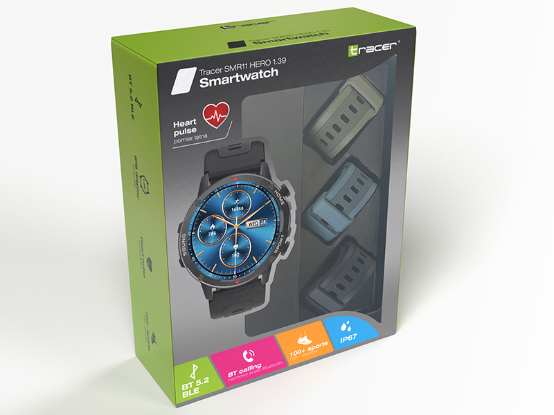 Smartwatch SMR11 HERO łączy się ze smartfonem za pomocą technologii Bluetooth 5.2BLE.