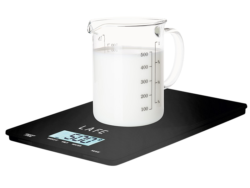 • Warto wspomnieć, że waga posiada możliwość obliczenia objętości wody i mleka. Co więcej, cyfrowy wyświetlacz LCD umożliwia wyświetlanie pomiarów w różnych jednostkach wagowych i objętościowych, takich jak gramy, uncje, mililitry czy fluidowe uncje.