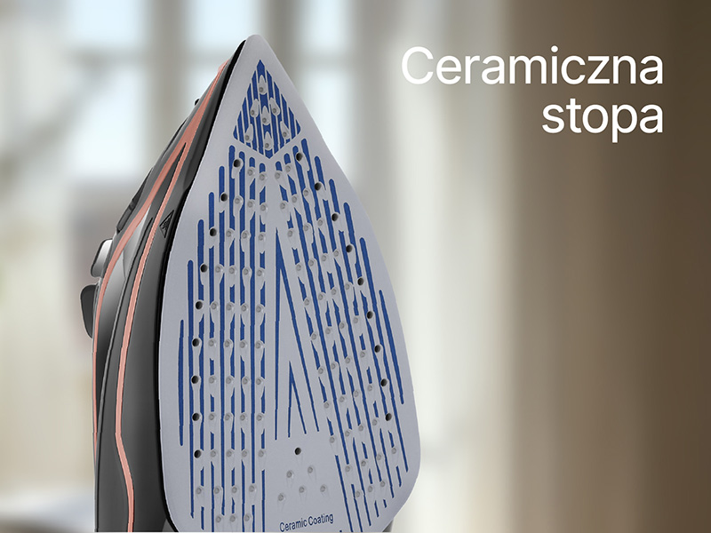 Ceramiczna stopa odporna na zarysowania zapewnia doskonały poślizg i równomierne rozprowadzanie ciepła, chroniąc tkaniny przed uszkodzeniem. To idealne rozwiązanie dla delikatnych i wymagających materiałów.
