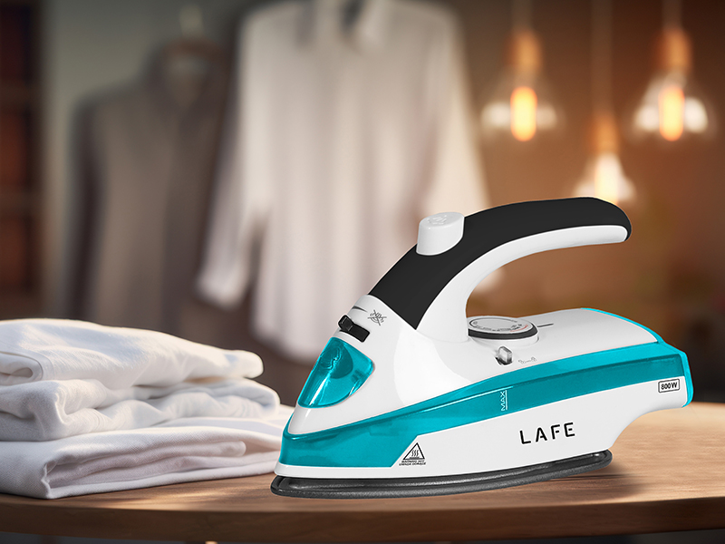 Żelazko LAFE zapewnia moc 800 W. Wykonana z wysokiej jakości teflonowa stopa zapewnia idealne ślizganie się żelazka po prasowanej tkaninie. Ergonomiczne i czytelne pokrętło regulacji temperatury. Praktyczna składana rączka ułatwi transport żelazka w torbie podróżnej, dzięki czemu zawsze będziesz mógł cieszyć się idealnymi ubraniami podczas wyjazdu.